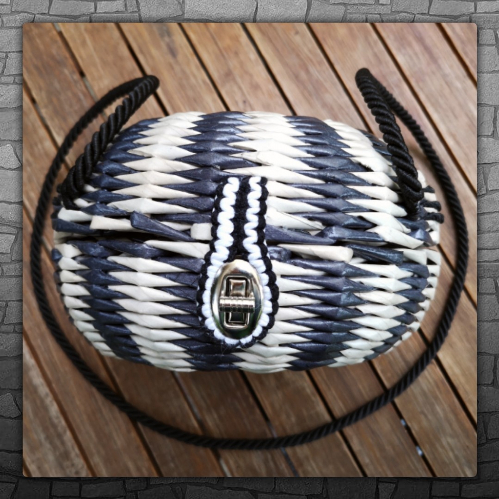 Ja łączę w swoich pracach elementy wyplatane z papieru z elementami plecionymi z ozdobnego sznurka. Tworzę makramowe paski i zapięcia do torebek annARo.