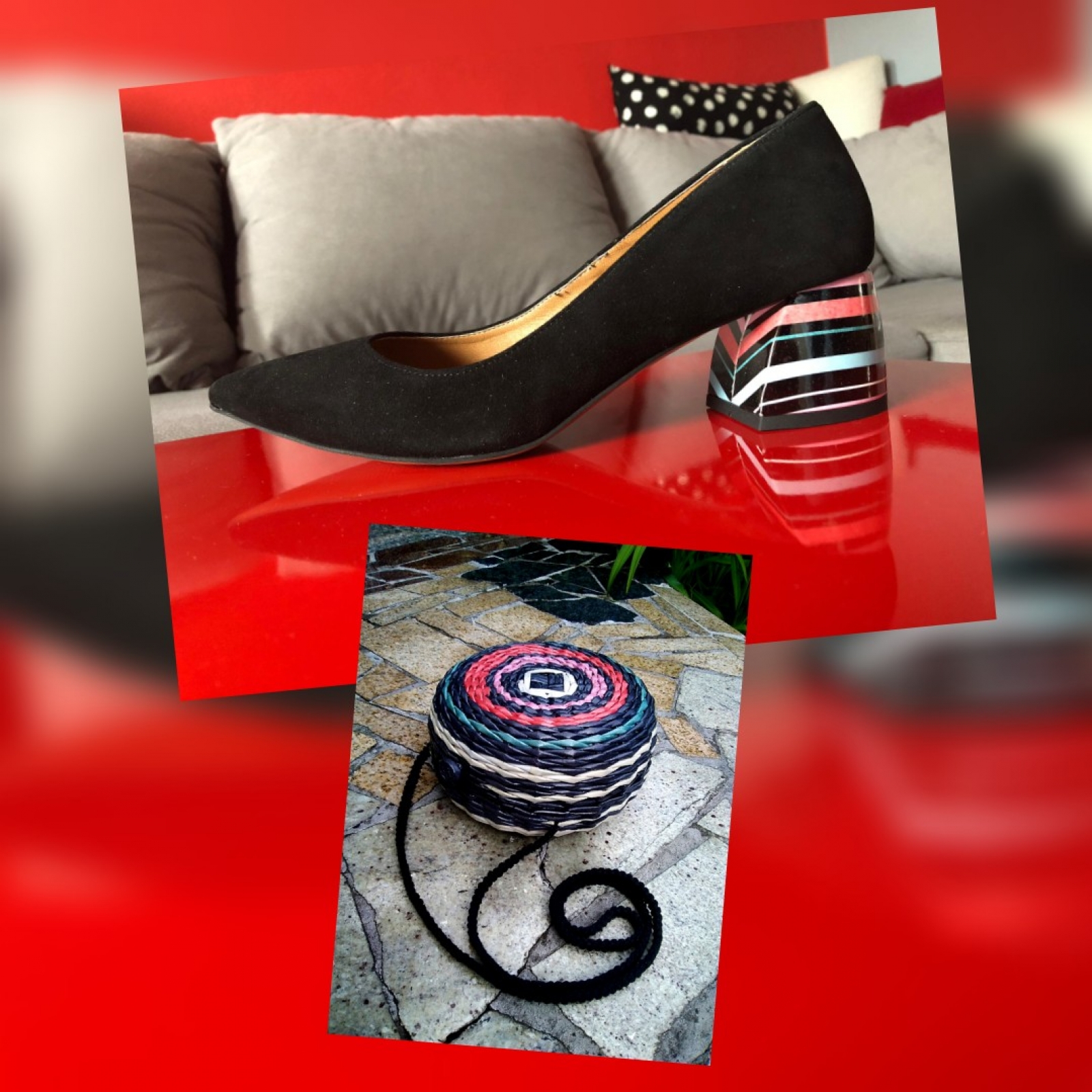 Opowiedziała o swoim pomyśle i przesłała zdjęcia butów. W odpowiedzi zaprojektowałam dla niej wirową torebkę jedynkę annARo.